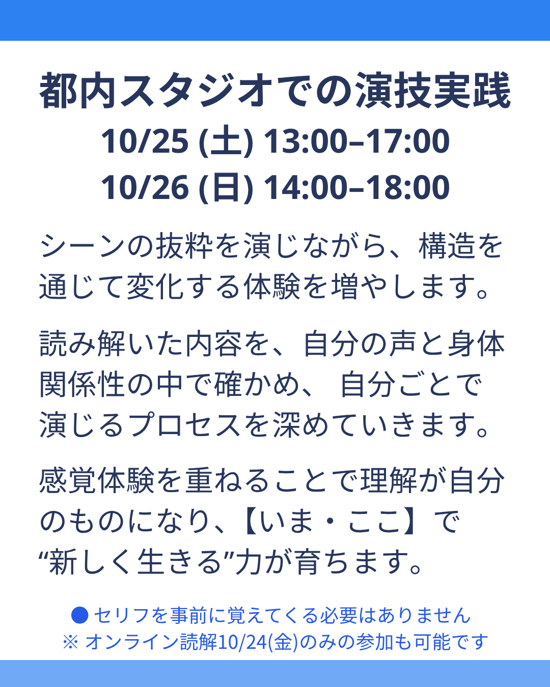 ◾️10月開催ー台本を読む力を演技力に変える三日間クラス