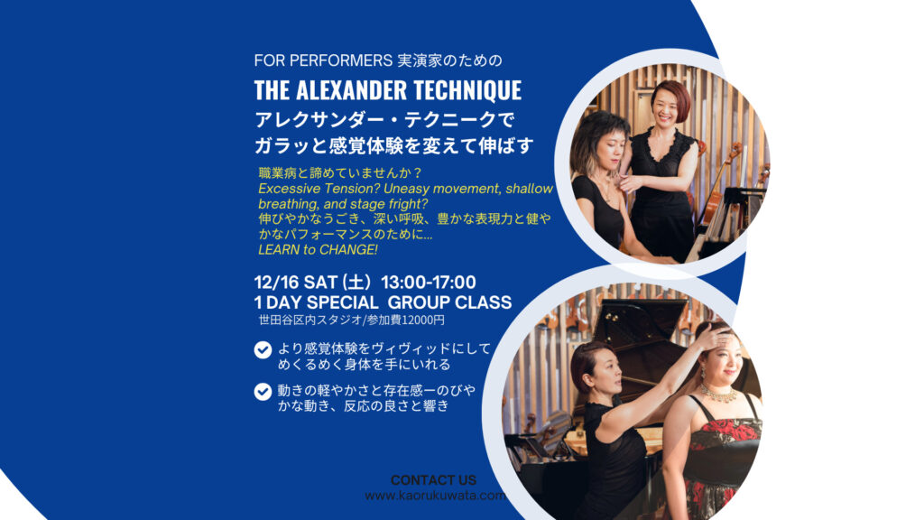メールもメッセージも件名にご自身のお名前と「12月アレクサンダー1日講座申し込み」とご明記ください。