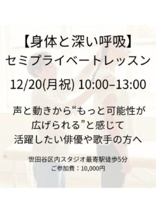 声は出ているのに伝わらない理由と、俳優・歌手が整えるべき「身体と呼吸」12/20セミプライベートレッスン